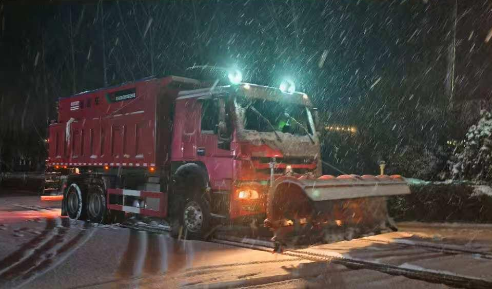 2025 年 12 月 12 日,我省迎来今冬首轮大范围强降雪,暴雪、寒潮、道路结冰多灾叠加,高速公路安全运行面临严峻考验。面对突发险情,大桥公司坚决贯彻省委省政府关于保障群众安全出行的部署要求,于当日 8 时果断启动Ⅲ级除雪保通应急响应,全员进入战时状态,全力守护路网畅通。