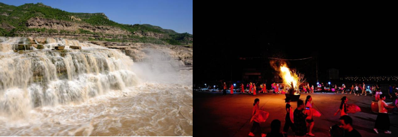 随着大巴车的前进,一场轻松愉悦的团队破冰行动便热烈开 场。随着延安知识问答、自我介绍等互动环节的推进,原本因部 门壁垒或岗位差异带来的些许陌生感迅速消融,为后续几天的集 体学习、深入交流和团队协作奠定了坚实的信任基础。 13:00,研学团抵达壶口瀑布,滔滔黄河水自宽阔的河床骤 然收束,空气中弥漫着细密的水雾。奔腾咆哮的瀑布使成员们领 略了母亲河的磅礴气势,感受中华民族自强不息的精神底蕴。夜 幕降临,研学团入住知青文苑酒店。晚餐后,一场别开生面的篝 火晚会在广场热烈开场。成员们踏着鼓点与当地群众共扭秧歌,在欢声笑语中深切体会革命老区的淳朴民风。