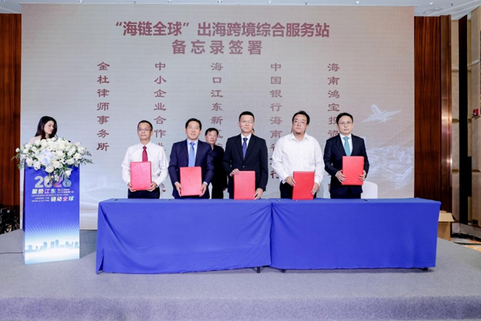 启动仪式上,鸿宝集团副董事长、总裁袁晓曦莅临现场,参与服务站启动这一重要环节,海南鸿宝公司总经理李真代表公司与海口江东新区管理局签署合作备忘录,未来将围绕服务贸易、产业协同、资源整合等领域开展深化合作,共同推进“海链全球”服务站高效运营,为国内企业“走出去”搭建高效、便捷的全球化通道。